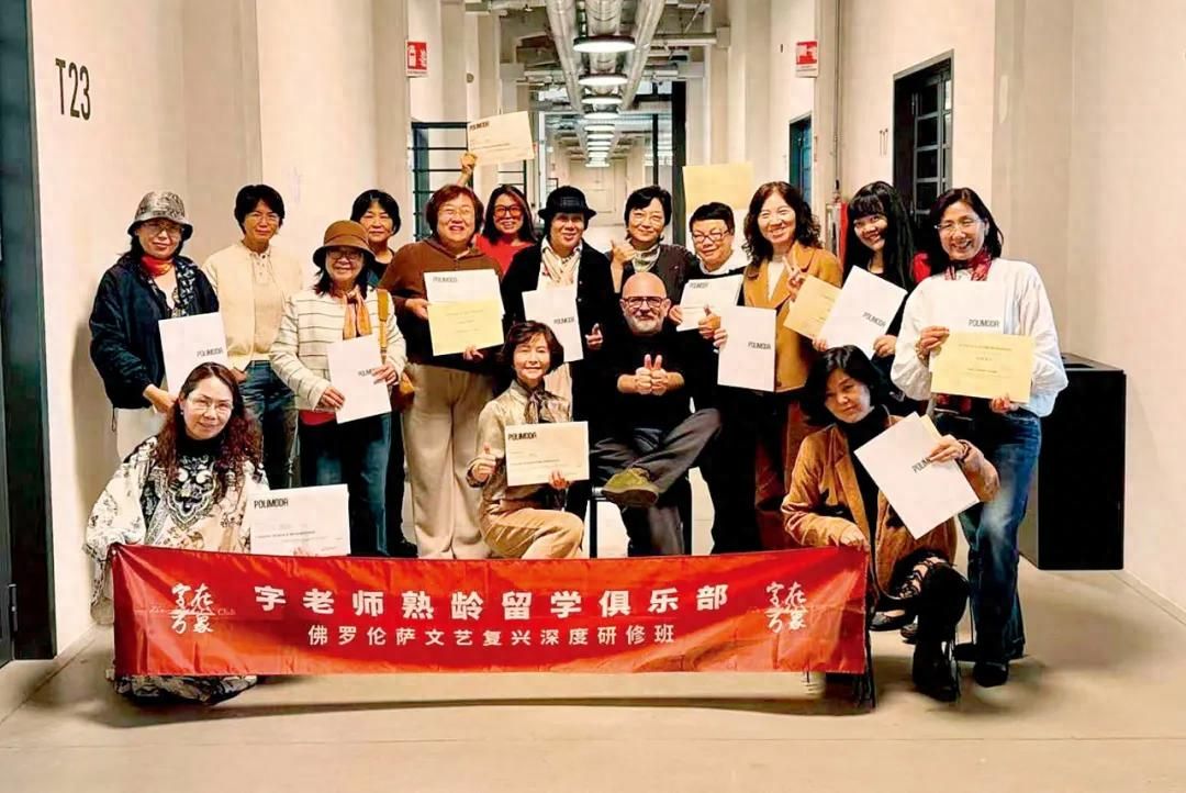 “字老師熟齡留學(xué)俱樂部”組織的意大利深度研修班合影 圖/受訪者提供